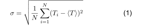 如果测量 N 个周期,抖动表示各个测量值 Ti 相对于其平均值 T 的分布,以峰峰值或 RMS(均方根)表示: