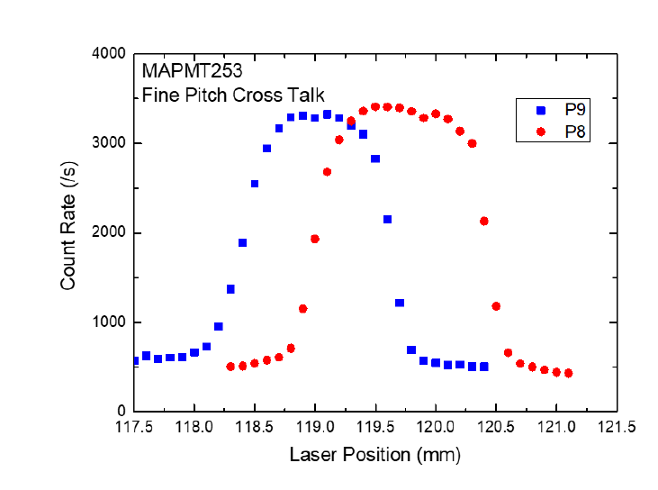 图4. MAPMT253的细小间距串扰。6、边缘效应