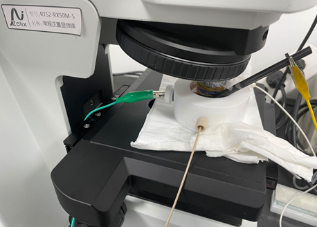 图2. 正在测试中的电化学原位拉曼电解池的实图。