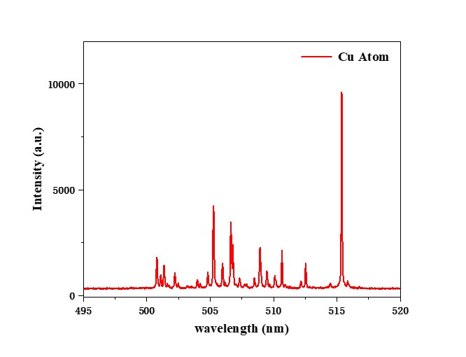 Cu原子在delay:200ns,width:5us下的发射谱线: