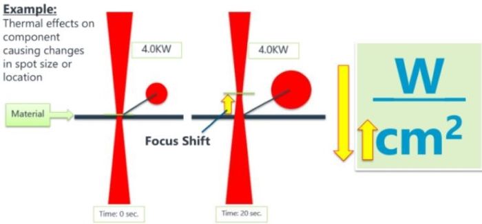 2. 功率检测发现激光器功率与初始没有改变,但是工作效果依然变差,这个其实是激光聚焦的焦点位置发生了改变(也就是我们常说的焦点飘移),*终导致工作点位置功率密度下降,从而达不到实际工作效果。