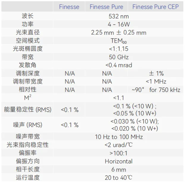 Finesse 系列是一款取得诺贝尔奖获得者首肯并且被全球行业用户认可的产品。其显著特征是拥有低于 0.02% 的超低噪声及通过 f to 2f 非线性干涉仪对 CEP 进行反馈控制。其广泛应用于超快激光泵浦、半导体行业及国防领域。