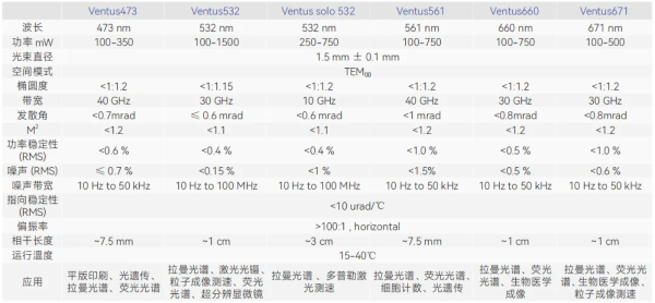 Ventus 系列激光器设计紧凑、结实、噪音低、稳定性高 , 寿命长 , 波长范围 473nm, 532nm, 561nm, 660nm,671nm 可选 , 是科研市场的首选产品。由于其功率和波长范围广 , Ventus 系列激光器可应用在拉曼光谱、光镊、光遗传和荧光成像 , 还可用在光纤传输。