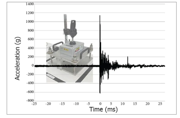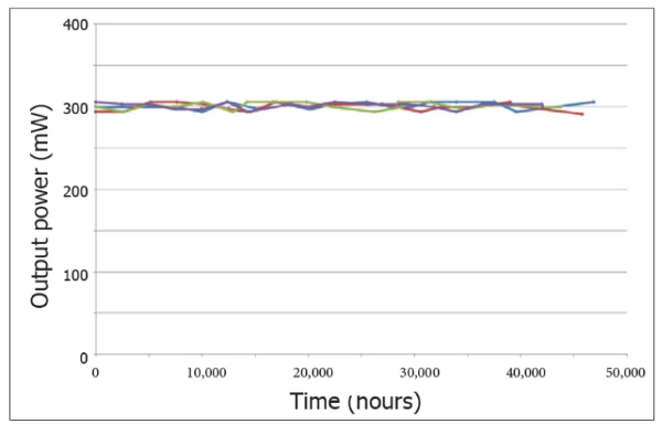 上图 ,4 款不同的 Gem 系列激光器在长时间工作后的功率输出变化图下图 ,有激光器承受 1200g 冲击振荡测试