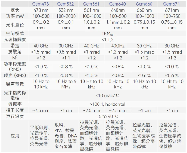 Gem 系列是一款紧凑型 OEM 集成用激光器。功率和波长范围较广泛 , 是优质光束质量激光器的理想之选。主要应用在拉曼光谱、荧光光谱、DNA 测序、细胞分类和可视化等。
