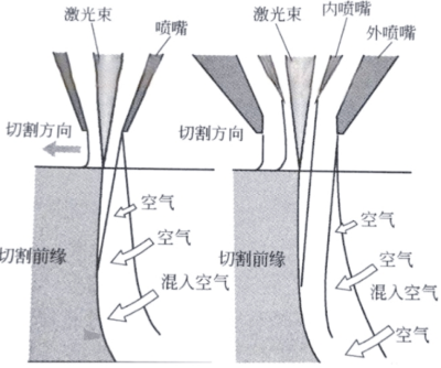 在激光切割或雕刻过程中,喷嘴的选择至关重要。不同的喷嘴类型和尺寸会影响到切割或雕刻的质量和效率。因此,在选择喷嘴时,我们需要根据具体的工艺需求和材料特性来进行合理的挑选。喷嘴主要有单喷嘴和双喷嘴两种: