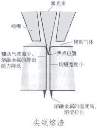 当焦点位置调整不当,导致切缝过窄时,会出现挂渣呈尖状,难以清除,同时切割面锥度较小,使得工件难以取出。