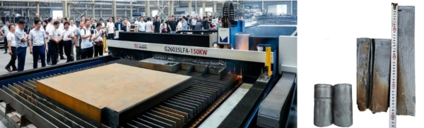 150kW超高功率激光切割机凭借其高效率、优质切割、高材料利用率、低运转成本以及环保安全等特点,正逐步替代等离子切割、火焰切割、高压水切割等传统高污染、高能耗的切割工艺,成为推动船舶、钢构、工程机械、能源电力、轨道交通等制造业转型升级的重要工具和得力助手。