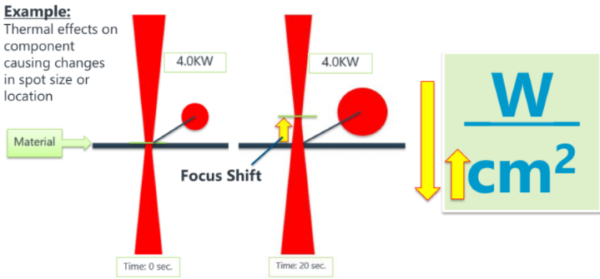 2. 功率检测发现激光器功率与初始没有改变,但是工作效果依然变差,这个其实是激光聚焦的焦点位置发生了改变(也就是我们常说的焦点飘移),*终导致工作点位置功率密度下降,从而达不到实际工作效果。
