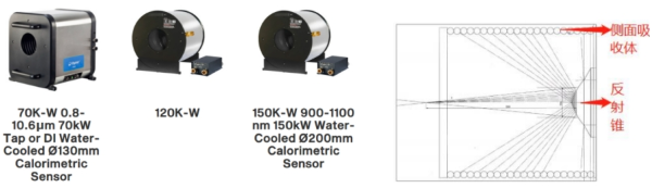 1. 超高功率测试功率计:采用热电堆吸收,通过测试水温变化从而做到高达150kW激光功率的测试。超大口径,安全无背向散射,可多向操作等特性,是超高激光器功率的测试*优选择;