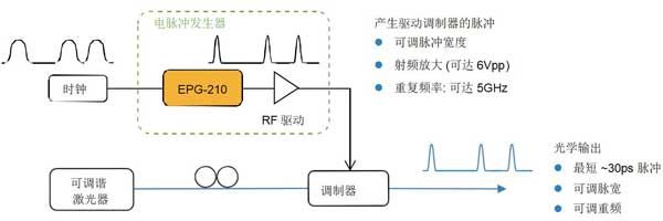 EPG-210皮秒电脉冲发生器可产生重频、脉宽可调的皮秒超快电脉冲,用于触发调制器或激光驱动器;提供高压输出选件可驱动绝大多数市售增益调制激光器;还可用于激光加工领域控制激光重频和脉宽。