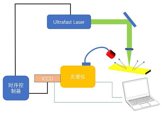 LIBS系统的主要构成有激光器,聚焦系统,样品区域,时序控制系统,信号接收装置,光谱仪和快速响应探测器(ICCD)等部分组成。如下图所示: